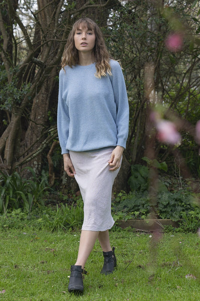 Crafted and spun in NZ by Lothlorian Knitwear using 50% Australian certified cotton and NZ ZQ traceable fine merino lambs wool.